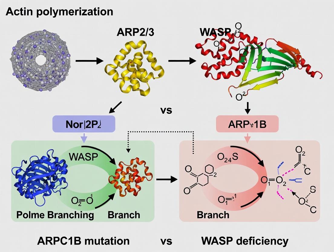 The study of synthetic lethal interactions in actin cytoskeleton regulation provides critical insights for therapeutic targeting. Within this field, ARPC1B (a key subunit of the Arp2/3 complex) and WASP (Wiskott-Aldrich Syndrome protein) are essential regulators of branched actin nucleation. While both are crucial for immune cell function, their deficiencies present distinct phenotypic and molecular profiles. Combined defect models reveal synthetic lethal interactions that highlight compensatory pathways and vulnerabilities, offering a blueprint for targeted drug development in immunodeficiencies and cancers.
