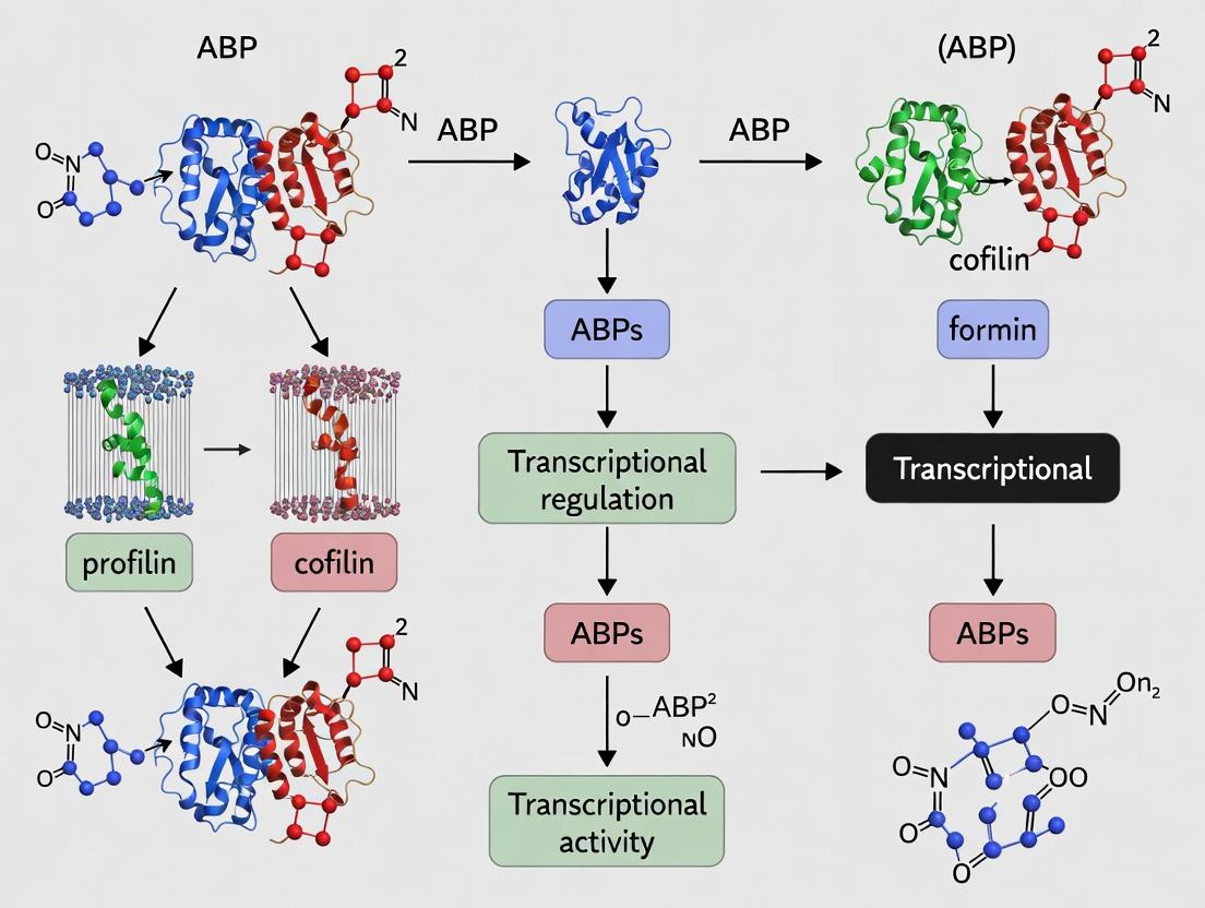 Key ABPs translocate to the nucleus via specific nuclear localization signals (NLS), where they interact with transcriptional complexes.