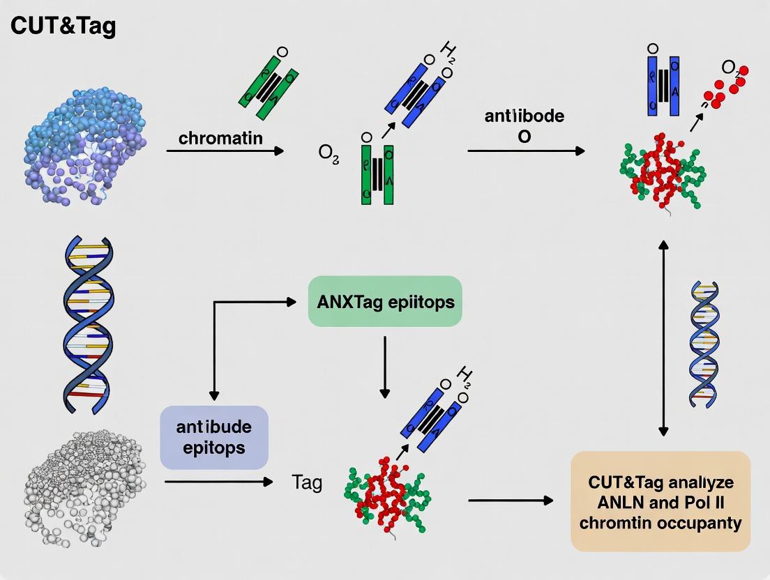 Understanding the precise spatiotemporal coordination of structural proteins and the core transcriptional machinery is a frontier in chromatin biology and oncology research. The ANLN (Anillin) protein, a cytoskeletal scaffold critical for cytokinesis and cellular integrity, is now recognized for its nuclear functions and oncogenic potential. Concurrently, RNA Polymerase II (Pol II) is the central enzyme driving gene transcription. This application note outlines the rationale and methodology for investigating their co-occupancy on chromatin, framing it within a thesis employing the CUT&Tag (Cleavage Under Targets and Tagmentation) assay. The central hypothesis is that ANLN plays a non-canonical, direct role in gene regulation by facilitating Pol II recruitment, pause-release, or transcriptional elongation at specific oncogenic loci.