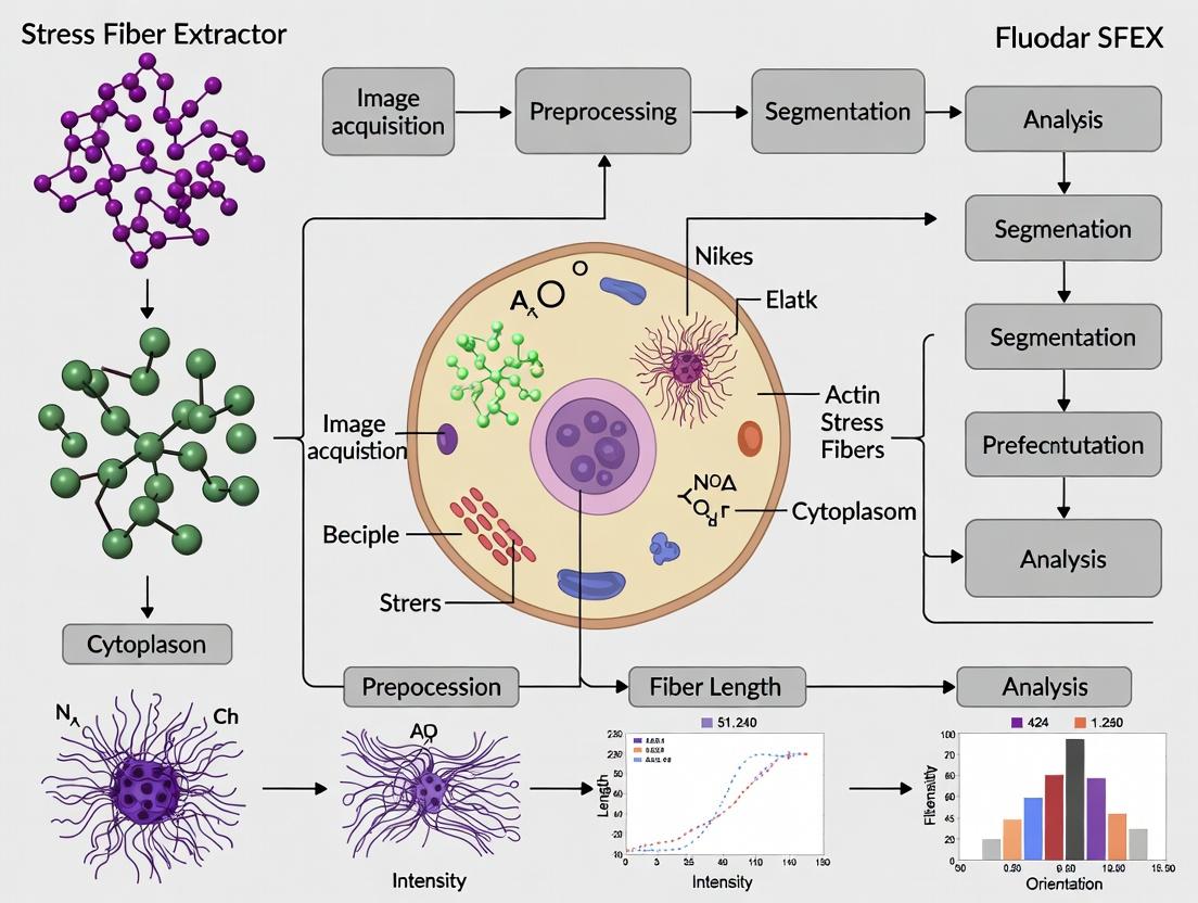 SFEX provides a robust, accessible solution for the quantitative analysis of actin stress fibers, bridging the gap between complex cytoskeletal biology and reproducible computational metrics. By mastering the foundational concepts, methodological workflow, troubleshooting techniques, and validation protocols outlined in this guide, researchers can confidently integrate SFEX into their studies of cell mechanics, morphological responses to drugs, and disease phenotypes. The future of this tool lies in its integration with larger bioimage analysis pipelines, adaptation for 3D and live-cell imaging, and application in high-content screening for drug discovery. As the field moves toward increased automation and standardization, tools like SFEX will be essential for extracting meaningful, quantitative insights from the complex architecture of the cellular cytoskeleton.