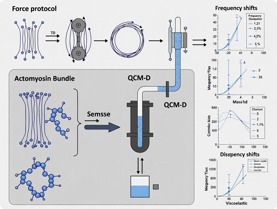| Forming Actomyosin Bundle | -50 to -200 Hz (kinetic) | 2 - 20 (kinetic) | Initial binding (Δf↓, ΔD↑), then maturation/stiffening (Δf↓ further, ΔD↓). |