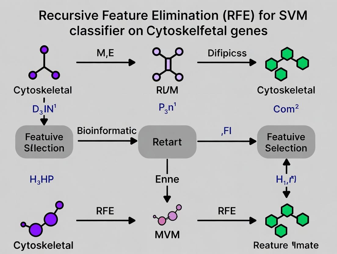 This guide provides researchers, scientists, and drug development professionals with a comprehensive framework for identifying key cytoskeletal gene biomarkers using Support Vector Machine (SVM) classifiers coupled with Recursive Feature Elimination...