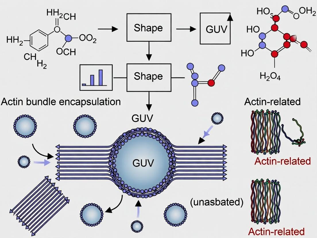 Objective: To encapsulate dynamically co-stabilized actin bundles and microtubules within GUVs to study competitive polymerization and mechanical interaction.