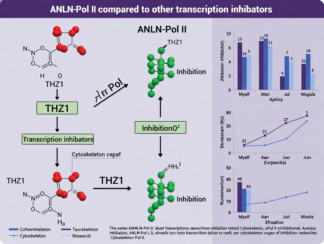 This guide compares transcriptional inhibition mechanisms within the broader research thesis on THZ1's selective inhibition of the ANLN-Pol II interaction complex versus the actions of classic, direct RNA Polymerase II (Pol II) inhibitors. Understanding these distinctions is critical for developing targeted cancer therapeutics that exploit transcriptional dependencies.