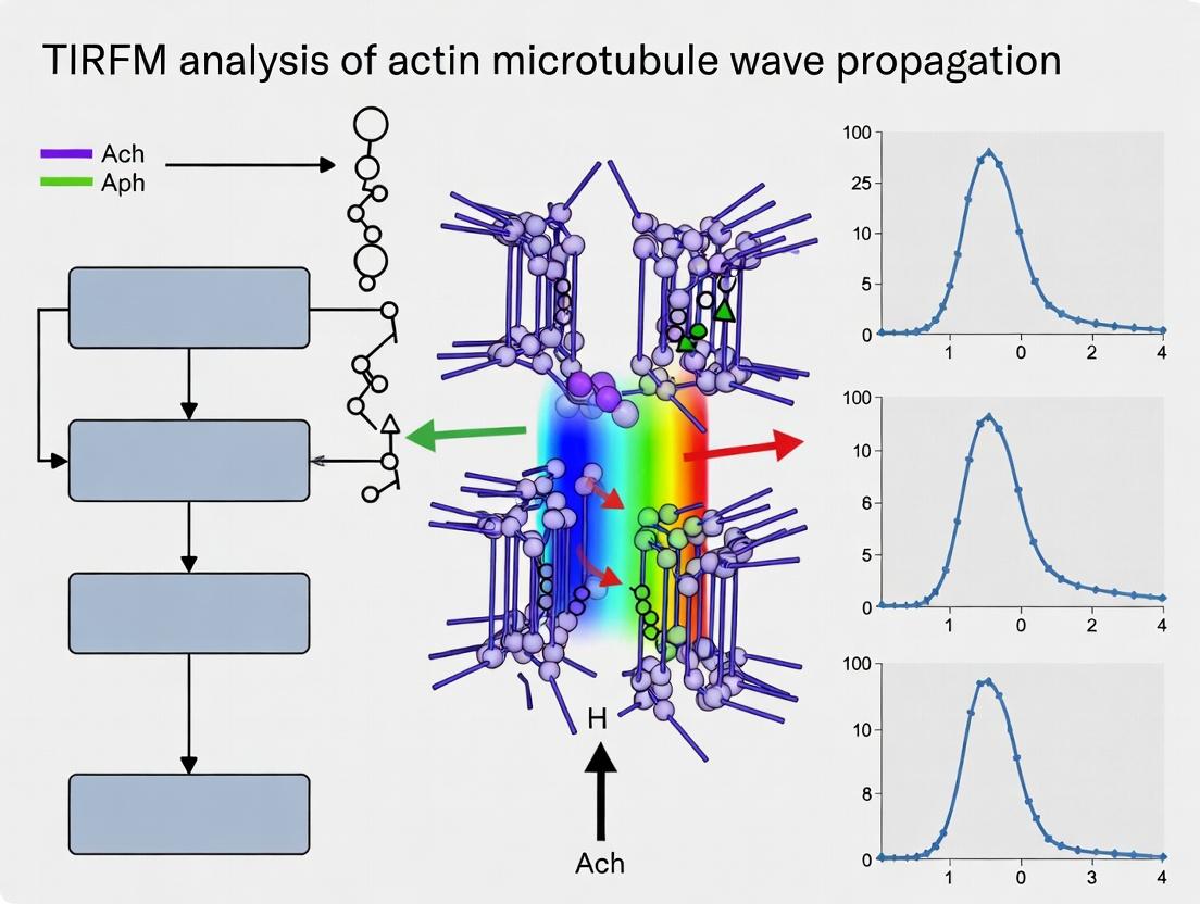 Propagating actin-microtubule waves are self-organizing, large-scale cytoskeletal structures observed in various cell types, including fibroblasts and neurons. They consist of co-dependent, coupled patterns of actin filaments and microtubules that periodically form and traverse the cell periphery or cytoplasm. These waves are not mere structural rearrangements but are dynamic signaling platforms, integrating mechanical and chemical cues to regulate cell shape, polarization, and migration. Their study is crucial within the broader thesis on TIRFM analysis, as Total Internal Reflection Fluorescence Microscopy (TIRFM) is the premier technique for visualizing the precise, sub-membrane dynamics of these wave initiation and propagation events in living cells.